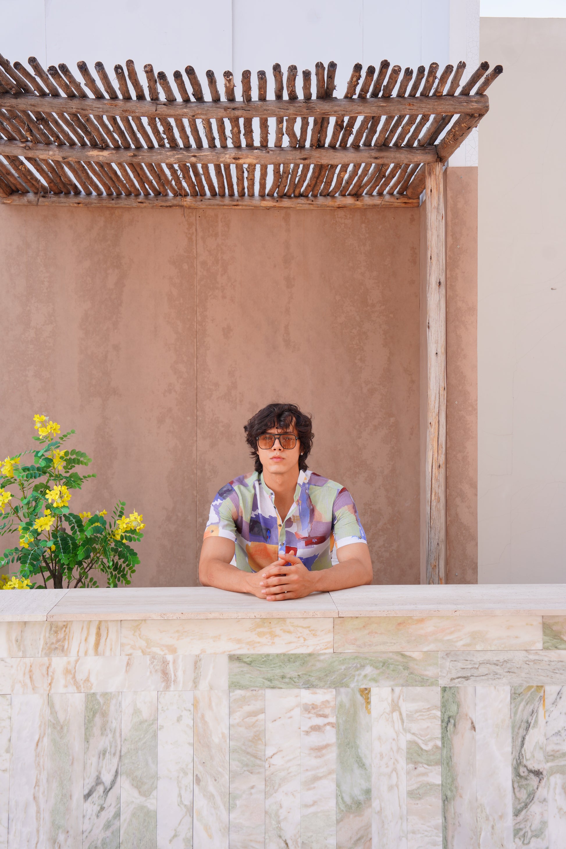 Crafted from airy linen-cotton with a bold painterly print. Features a half-placket neckline, relaxed fit, and effortless summer energy.