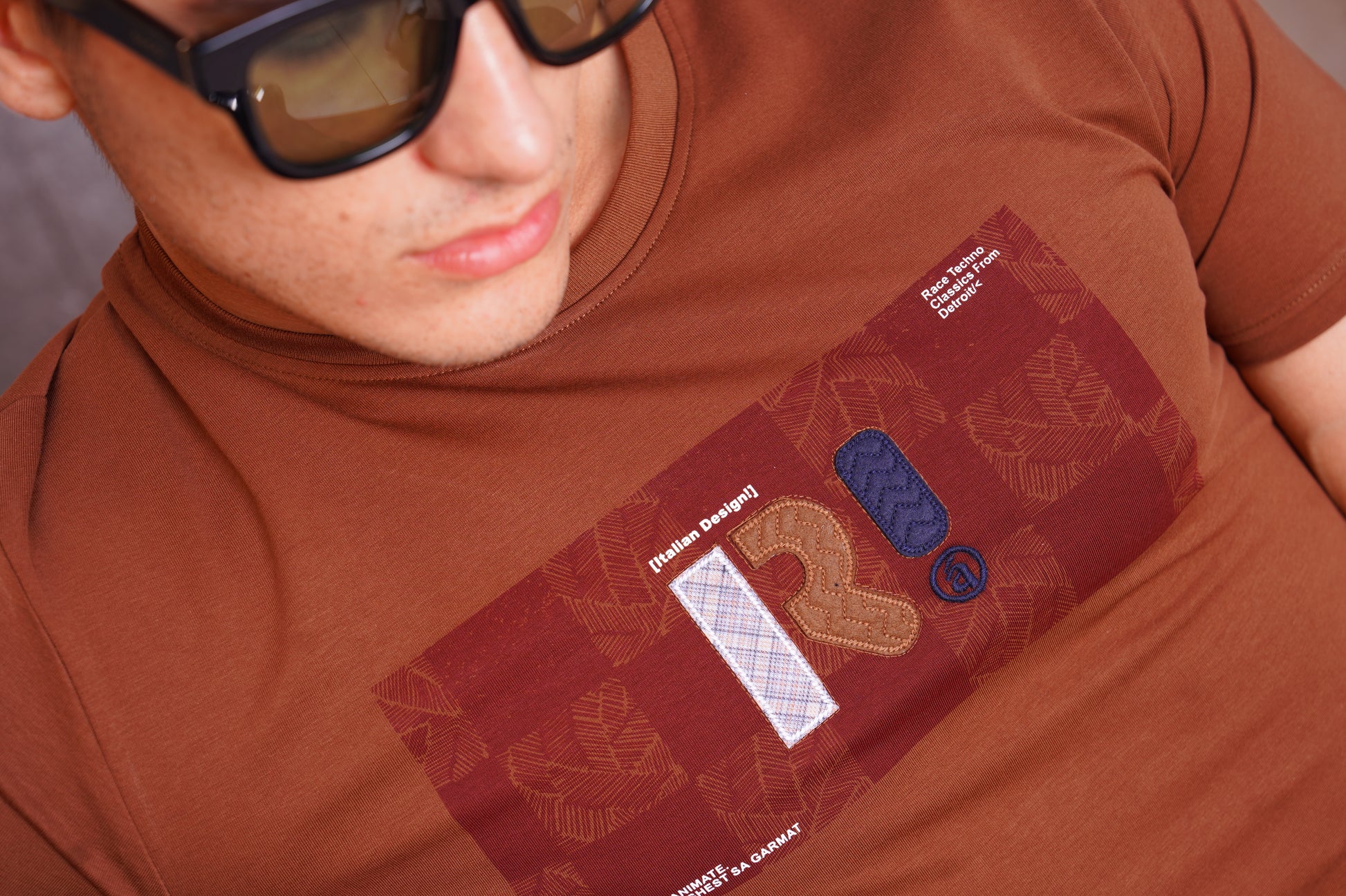 This rich cocoa brown tee features our signature patch design with mixed fabric textures, contrast stitching, and a bold “R” motif. Made from wrinkle-resistant, skin-soft cotton, this tee delivers all-day comfort and sharp style in one refined silhouette. For those who like their off-duty days with a touch of statement.