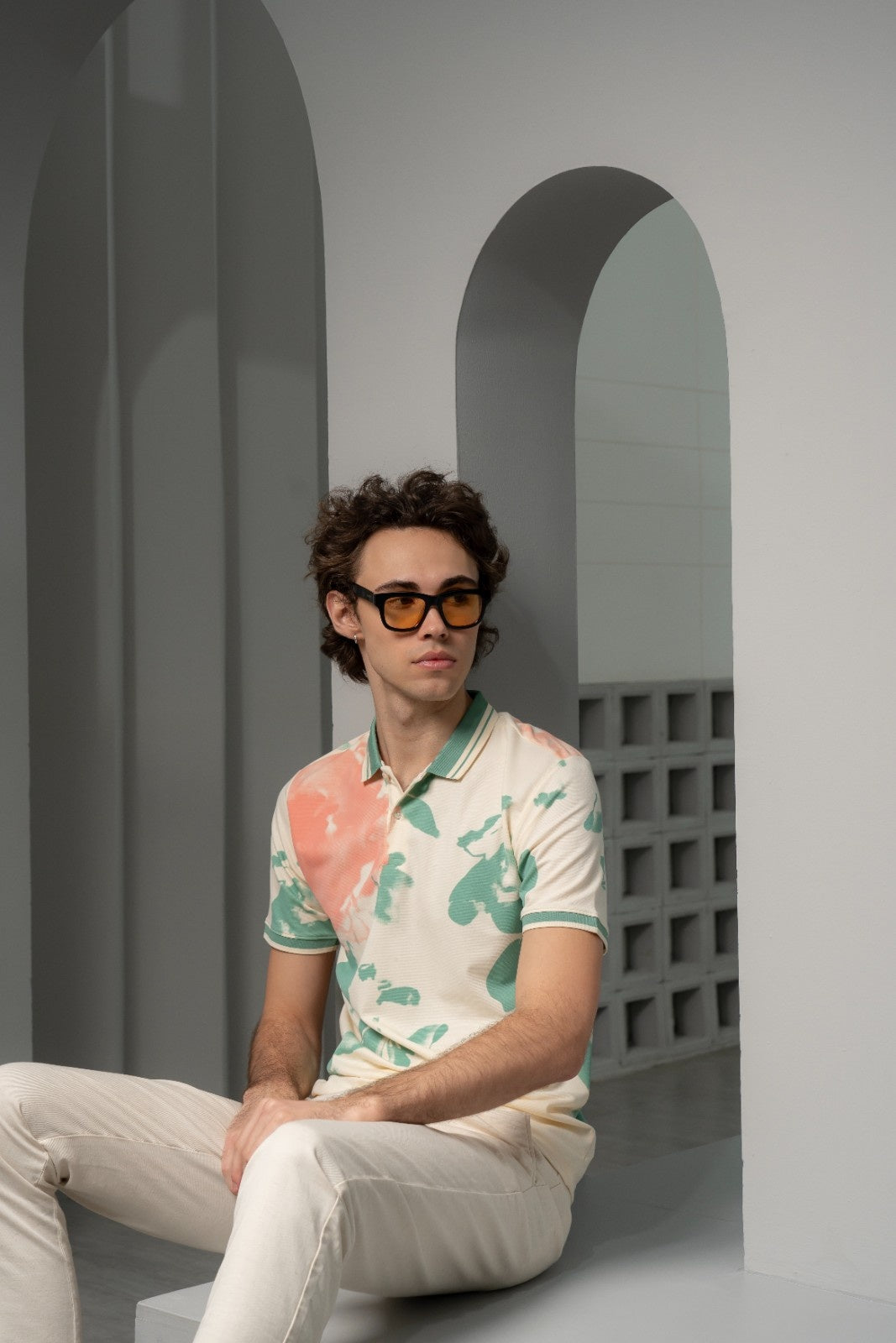 The Teal Haze Polo brings fresh energy to a classic silhouette. Crafted from soft, breathable fabric, it ensures comfort while keeping a clean, tailored look. The teal and peach abstract print adds a playful yet refined touch, creating a perfect blend of color and character. Ideal for casual outings or weekend wear with a stylish twist.
