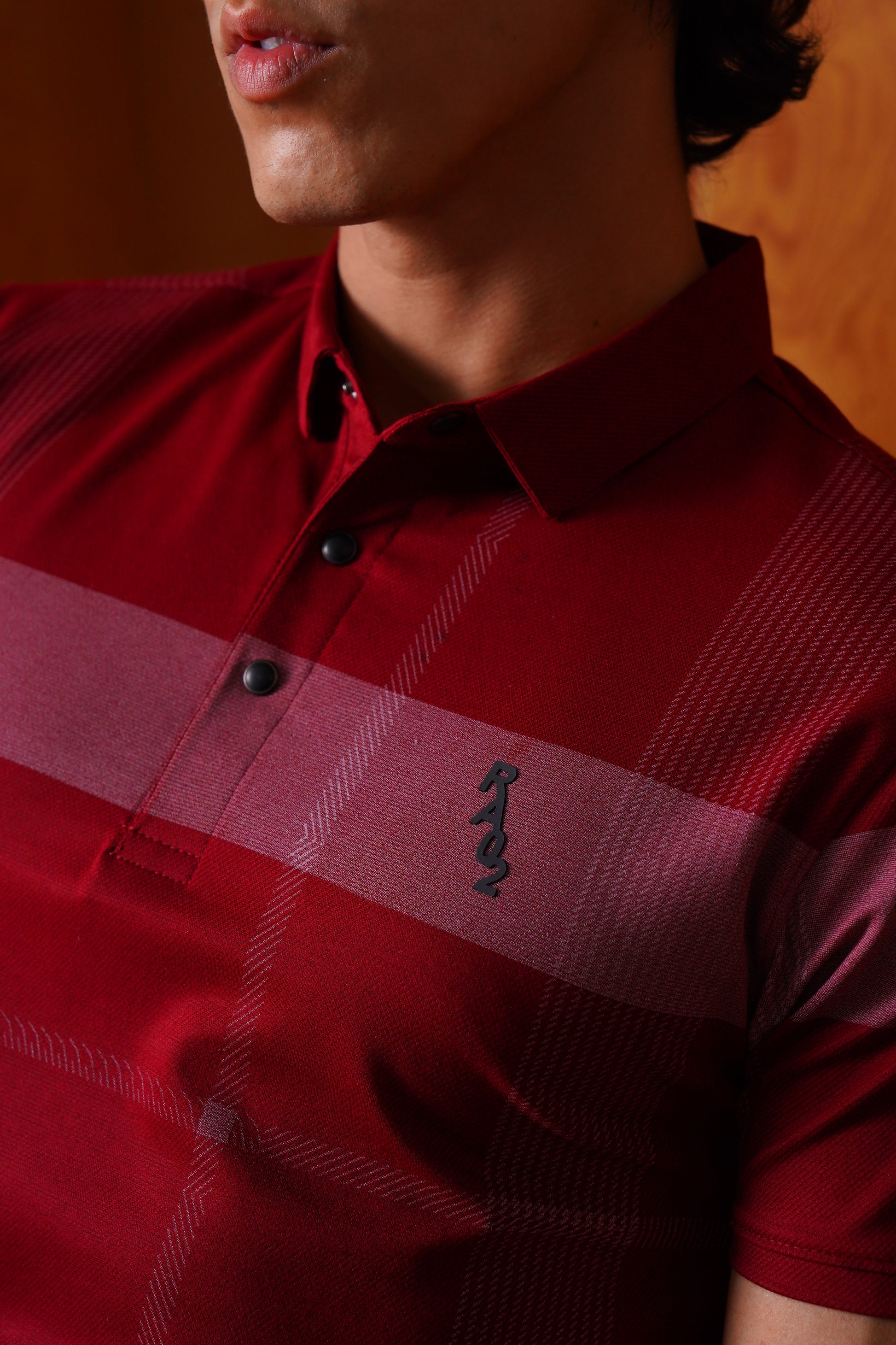 The Crimson Grid Polo is your wardrobe’s power move. Designed in a deep red palette with oversized tonal checks, it merges vintage charm with modern structure. The subtle logo embroidery and sharp collar detail add the right amount of attitude.